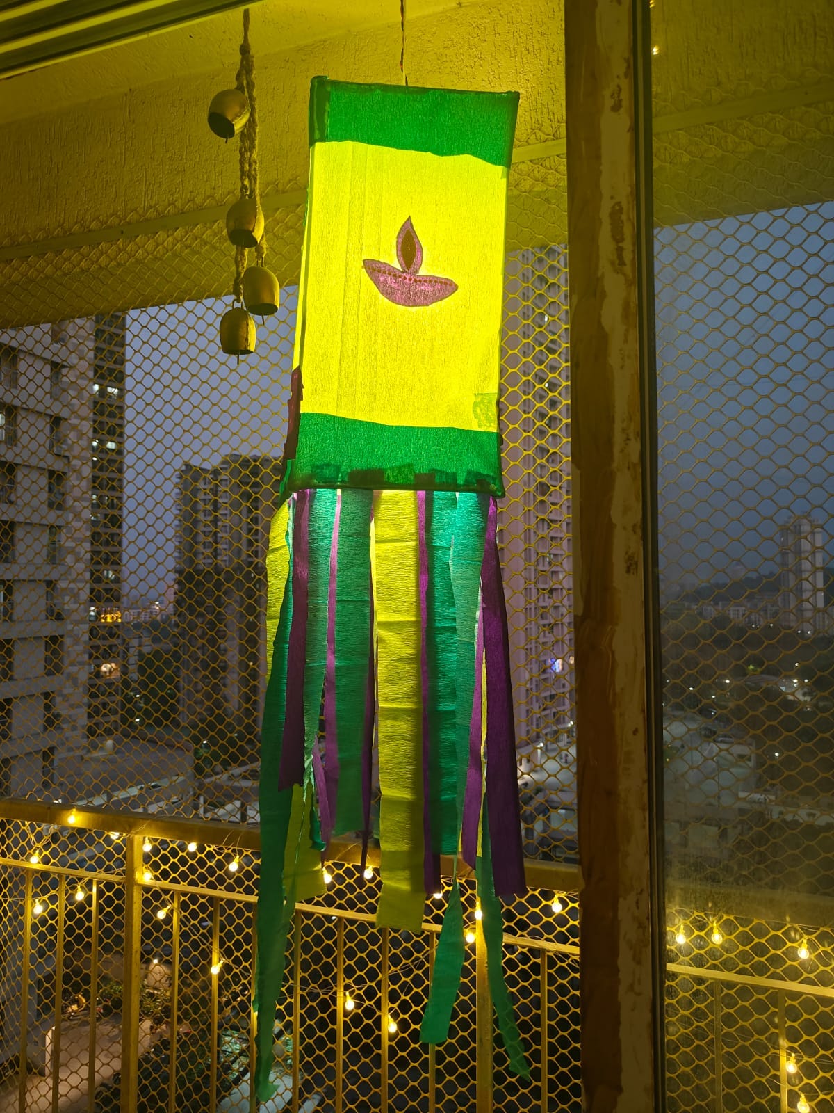 Summer, monsoon, and the Indian festive season have gone by, but the rains refuse to leave this city. Despite that, Diwali cleaning is the equivalent of spring cleaning for my family. We dust every corner, wipe the ceiling fans, vacuum the sofa, clean the windows, reset our cupboards, separate clothes between a donation pile and a rag pile, and then set up the Diwali lights. Poor Josh had to be subjected to my madness as well, but he’s such a sport. We coordinated pest control, cleaning services, and carpenters. The day before Diwali, everything was clean. Josh and I hung up the lights on the balcony and inside the house as well. Very delicately, our handmade kandil was hung up from the balcony ceiling.